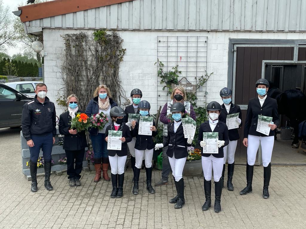 Nach monatelanger Turnierpause waren gerade die Kinder und Jugendlichen des Vereins besonders aufgeregt und erwarteten den 15. Mai mit großer Spannung. Vorbereitet wurden die Prüflinge von der Lehrgangsleiterin Ingeborg Galow in der Dressur und von Britta Braunert im Springen.